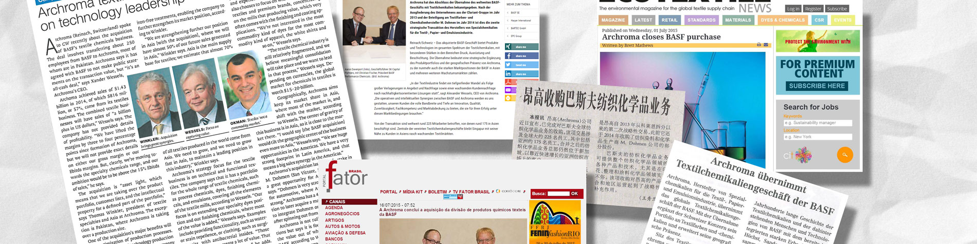 To manage the interest and keep a consistent, on-target message, EMG advised Archroma on a communications strategy for Announcement Day centred on telephone interviews with its CEO and its President Textiles, together with the (former) Vice President of BASF’s Textile Chemicals business. The interviews were co-ordinated by EMG on-site at Achroma’s headquarters in Reinach, Switzerland, with all three spokespeople in attendance.