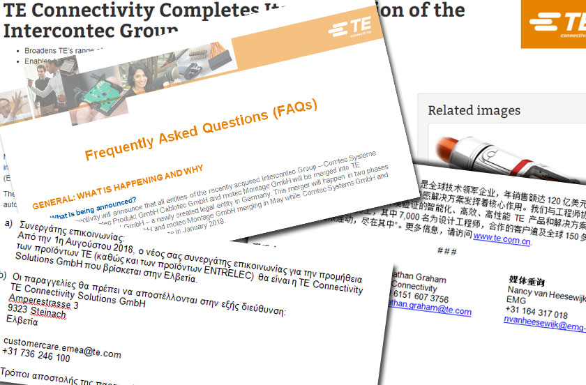 TE Connectivity involved EMG in the communication of three of its acquisitions. The EMG team was on board from the outset on each occasion. This enabled us to propose, develop and align internal and external communications materials for the announcement of the signing through to closing and the final merger stage. Co-ordinating M&A communications is complex. It is time sensitive, there is the issue of confidentiality and many points of view to consider. M&A activity creates a challenging period for all parties concerned. In addition to the confidential, multifaceted, behind-the-scenes processes for each organisation, it’s important that all stakeholders are informed with the right message at the right time, using the right channel. A well-considered and well-timed approach can help to moderate the uncertainty that comes with change. We believe that consistent, clear and transparent content is vital to the M&A process. Consistency avoids contradiction and consequent confusion. Clarity is important to create understanding of the messages and the personal consequences for each stakeholder. As much transparency as possible is essential to gain trust and cooperation and make the deal a success. Stakeholder communications and engagement starts before signing, continues during and after signing, but importantly also needs to continue after closing to make the M&A work; it’s important to report on progress and future plans to create buy-in from both internal and external stakeholders.